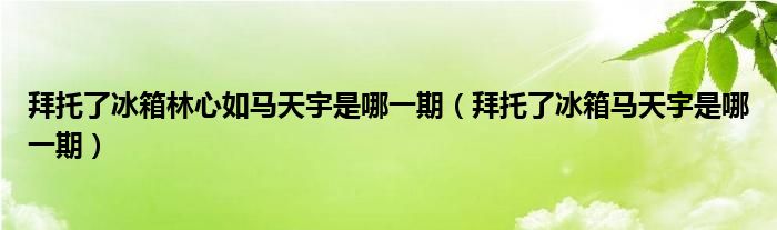 大家好,小晋来为大家解答以下问题,关于拜托了冰箱林心如马天宇是哪一期,拜托了冰箱马天宇是哪一期很多人还不知道,今天让我们一起来看看吧!