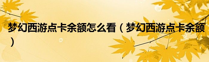 关于梦幻西游点卡余额怎么看,梦幻西游点卡余额这个很多人还不知道,今天菲菲来为大家解答以上的问题,现在让我们一起来看看吧!