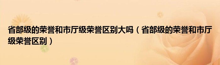 关于省部级的荣誉和市厅级荣誉区别大吗,省部级的荣誉和市厅级荣誉区别这个很多人还不知道,今天菲菲来为大家解答以上的问题,现在让我们一起来看看吧!