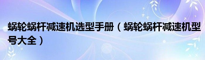 关于蜗轮蜗杆减速机选型手册,蜗轮蜗杆减速机型号大全这个很多人还不知道,今天菲菲来为大家解答以上的问题,现在让我们一起来看看吧!