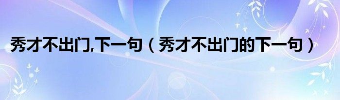 关于秀才不出门,下一句,秀才不出门的下一句这个很多人还不知道,今天菲菲来为大家解答以上的问题,现在让我们一起来看看吧!