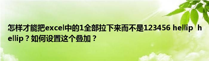 关于怎样才能把excel中的1全部拉下来而不是123456 hellip hellip?如何设置这个叠加?这个很多人还不知道,今天菲菲来为大家解答以上的问题,现在让我们一起来看看吧!