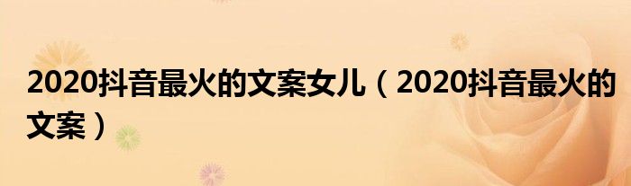 大家好,来宝来为大家解答以下问题,2020抖音最火的文案女儿,2020抖音最火的文案很多人还不知道,今天让我们一起来看看吧!