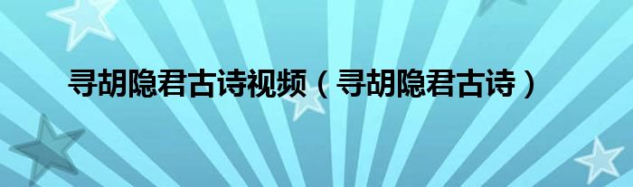 大家好,小晋来为大家解答以下问题,关于寻胡隐君古诗视频,寻胡隐君古诗很多人还不知道,今天让我们一起来看看吧!