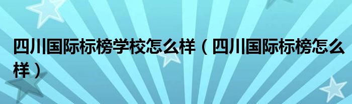 大家好,小晋来为大家解答以下问题,关于四川国际标榜学校怎么样,四川国际标榜怎么样很多人还不知道,今天让我们一起来看看吧!