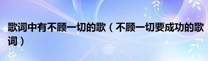 关于歌词中有不顾一切的歌,不顾一切要成功的歌词这个很多人还不知道,今天菲菲来为大家解答以上的问题,现在让我们一起来看看吧!