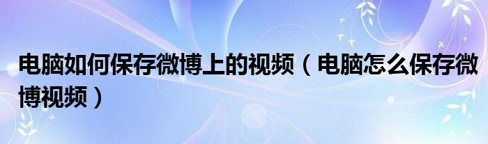 关于电脑如何保存微博上的视频,电脑怎么保存微博视频这个很多人还不知道,今天菲菲来为大家解答以上的问题,现在让我们一起来看看吧!