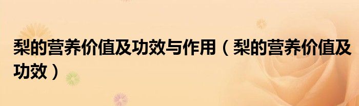 关于梨的营养价值及功效与作用,梨的营养价值及功效这个很多人还不知道,今天菲菲来为大家解答以上的问题,现在让我们一起来看看吧!