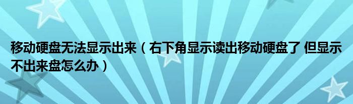 关于移动硬盘无法显示出来,右下角显示读出移动硬盘了 但显示不出来盘怎么办这个很多人还不知道,今天菲菲来为大家解答以上的问题,现在让我们一起来看看吧!