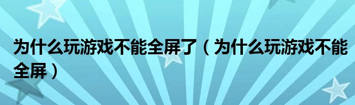 大家好,来宝来为大家解答以下问题,为什么玩游戏不能全屏了,为什么玩游戏不能全屏很多人还不知道,今天让我们一起来看看吧!