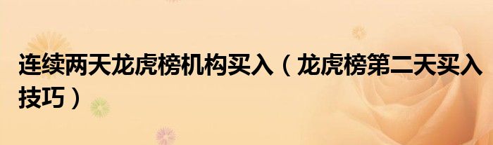 连续两天龙虎榜机构买入(龙虎榜第二天买入技巧)