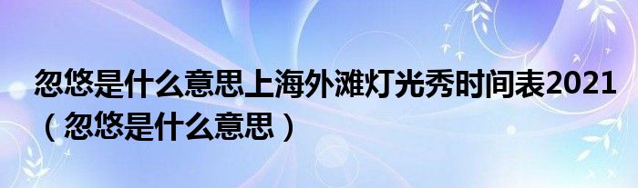 大家好,小晋来为大家解答以下问题,关于忽悠是什么意思上海外滩灯光秀时间表2021,忽悠是什么意思很多人还不知道,今天让我们一起来看看吧!