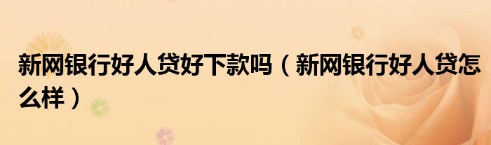 大家好,小晋来为大家解答以下问题,关于新网银行好人贷好下款吗,新网银行好人贷怎么样很多人还不知道,今天让我们一起来看看吧!