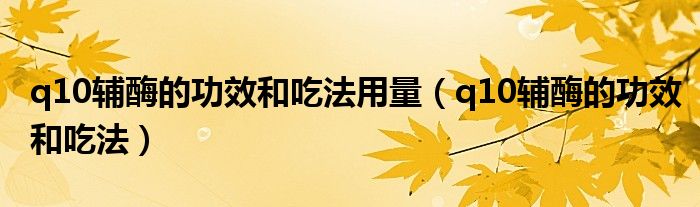 关于q10辅酶的功效和吃法用量,q10辅酶的功效和吃法这个很多人还不知道,今天菲菲来为大家解答以上的问题,现在让我们一起来看看吧!