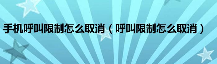 大家好,小晋来为大家解答以下问题,关于手机呼叫限制怎么取消,呼叫限制怎么取消很多人还不知道,今天让我们一起来看看吧!