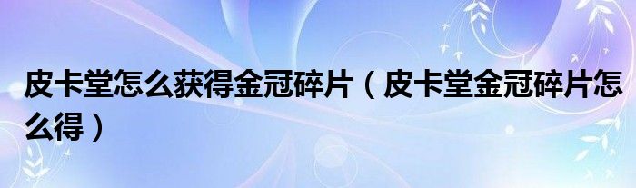 关于皮卡堂怎么获得金冠碎片,皮卡堂金冠碎片怎么得这个很多人还不知道,今天菲菲来为大家解答以上的问题,现在让我们一起来看看吧!