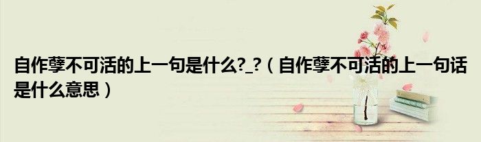 关于自作孽不可活的上一句是什么?_?,自作孽不可活的上一句话是什么意思这个很多人还不知道,今天菲菲来为大家解答以上的问题,现在让我们一起来看看吧!