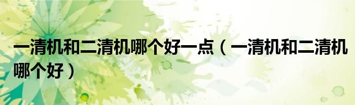 大家好,小晋来为大家解答以下问题,关于一清机和二清机哪个好一点,一清机和二清机哪个好很多人还不知道,今天让我们一起来看看吧!