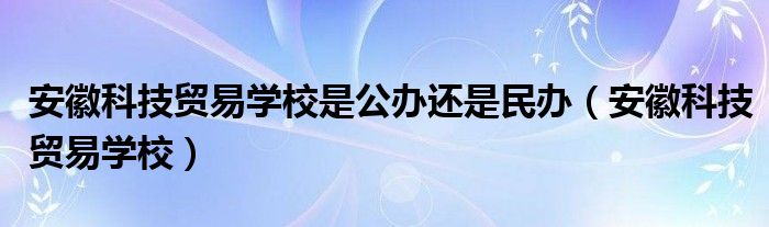 关于安徽科技贸易学校是公办还是民办,安徽科技贸易学校这个很多人还不知道,今天菲菲来为大家解答以上的问题,现在让我们一起来看看吧!