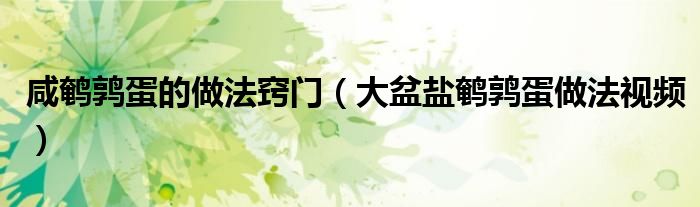 大家好,小晋来为大家解答以下问题,关于咸鹌鹑蛋的做法窍门,大盆盐鹌鹑蛋做法视频很多人还不知道,今天让我们一起来看看吧!