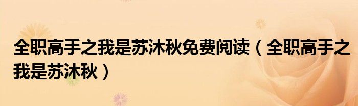 大家好,小晋来为大家解答以下问题,关于全职高手之我是苏沐秋免费阅读,全职高手之我是苏沐秋很多人还不知道,今天让我们一起来看看吧!