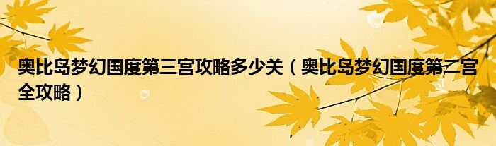 关于奥比岛梦幻国度第三宫攻略多少关,奥比岛梦幻国度第二宫全攻略这个很多人还不知道,今天菲菲来为大家解答以上的问题,现在让我们一起来看看吧!