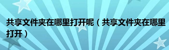 关于共享文件夹在哪里打开呢,共享文件夹在哪里打开这个很多人还不知道,今天菲菲来为大家解答以上的问题,现在让我们一起来看看吧!