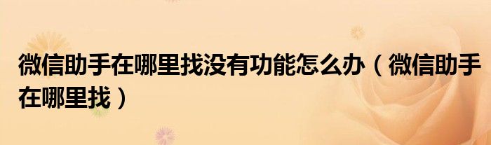 大家好,小晋来为大家解答以下问题,关于微信助手在哪里找没有功能怎么办,微信助手在哪里找很多人还不知道,今天让我们一起来看看吧!
