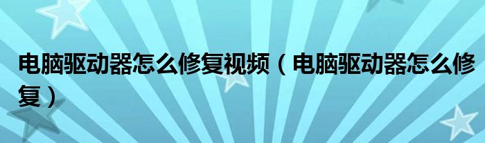 电脑驱动器怎么修复视频(电脑驱动器怎么修复)