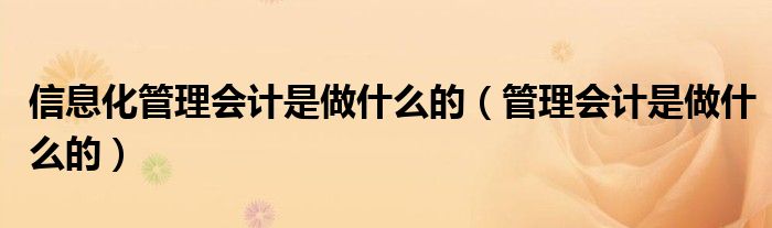 关于信息化管理会计是做什么的,管理会计是做什么的这个很多人还不知道,今天菲菲来为大家解答以上的问题,现在让我们一起来看看吧!