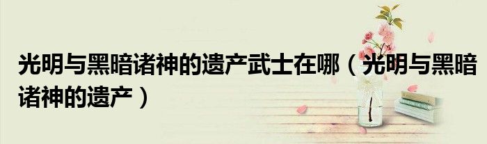 关于光明与黑暗诸神的遗产武士在哪,光明与黑暗诸神的遗产这个很多人还不知道,今天菲菲来为大家解答以上的问题,现在让我们一起来看看吧!