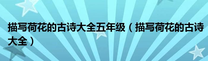 关于描写荷花的古诗大全五年级,描写荷花的古诗大全这个很多人还不知道,今天菲菲来为大家解答以上的问题,现在让我们一起来看看吧!
