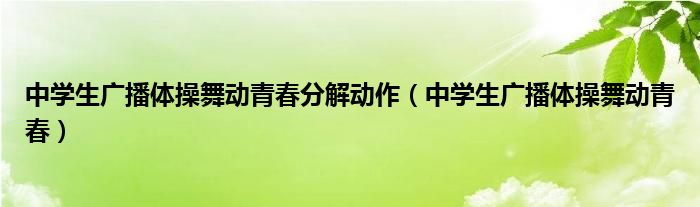 关于中学生广播体操舞动青春分解动作,中学生广播体操舞动青春这个很多人还不知道,今天菲菲来为大家解答以上的问题,现在让我们一起来看看吧!