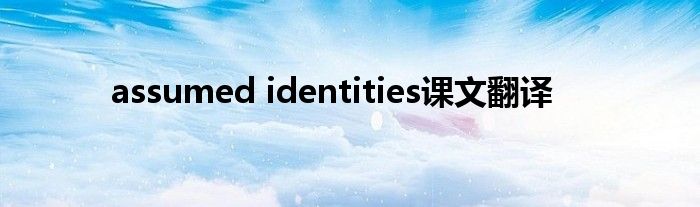 关于assumed identities课文翻译这个很多人还不知道,今天菲菲来为大家解答以上的问题,现在让我们一起来看看吧!