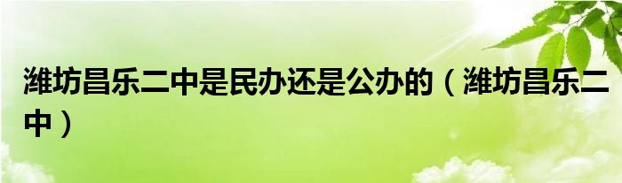 关于潍坊昌乐二中是民办还是公办的,潍坊昌乐二中这个很多人还不知道,今天菲菲来为大家解答以上的问题,现在让我们一起来看看吧!