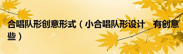 关于合唱队形创意形式,小合唱队形设计 有创意些这个很多人还不知道,今天菲菲来为大家解答以上的问题,现在让我们一起来看看吧!