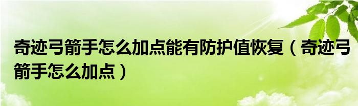 关于奇迹弓箭手怎么加点能有防护值恢复,奇迹弓箭手怎么加点这个很多人还不知道,今天菲菲来为大家解答以上的问题,现在让我们一起来看看吧!