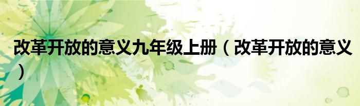 关于改革开放的意义九年级上册,改革开放的意义这个很多人还不知道,今天菲菲来为大家解答以上的问题,现在让我们一起来看看吧!