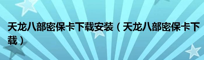 关于天龙八部密保卡下载安装,天龙八部密保卡下载这个很多人还不知道,今天菲菲来为大家解答以上的问题,现在让我们一起来看看吧!