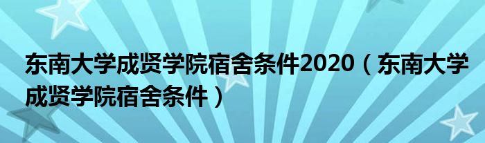 关于东南大学成贤学院宿舍条件2020,东南大学成贤学院宿舍条件这个很多人还不知道,今天菲菲来为大家解答以上的问题,现在让我们一起来看看吧!