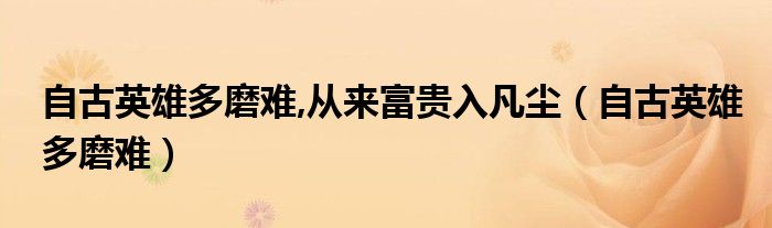 关于自古英雄多磨难,从来富贵入凡尘,自古英雄多磨难这个很多人还不知道,今天菲菲来为大家解答以上的问题,现在让我们一起来看看吧!