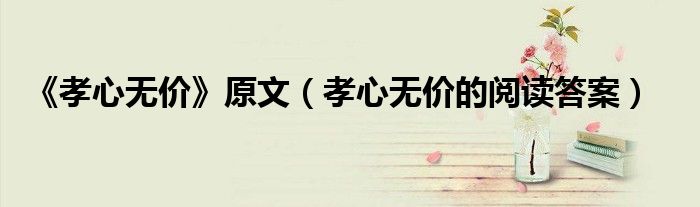 关于《孝心无价》原文,孝心无价的阅读答案这个很多人还不知道,今天菲菲来为大家解答以上的问题,现在让我们一起来看看吧!