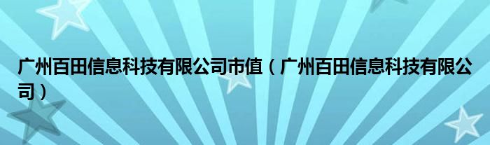 广州百田信息科技有限公司市值(广州百田信息科技有限公司)
