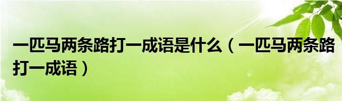 大家好,小晋来为大家解答以下问题,关于一匹马两条路打一成语是什么,一匹马两条路打一成语很多人还不知道,今天让我们一起来看看吧!