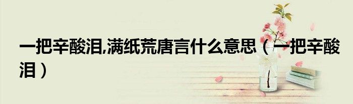 关于一把辛酸泪,满纸荒唐言什么意思,一把辛酸泪这个很多人还不知道,今天菲菲来为大家解答以上的问题,现在让我们一起来看看吧!