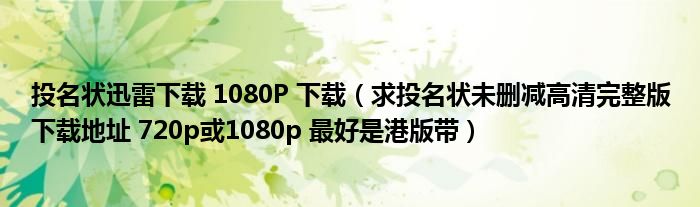 关于投名状迅雷下载 1080P 下载,求投名状未删减高清完整版下载地址 720p或1080p 最好是港版带这个很多人还不知道,今天菲菲来为大家解答以上的问题,现在让我们一起来看看吧!