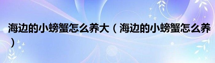 关于海边的小螃蟹怎么养大,海边的小螃蟹怎么养这个很多人还不知道,今天菲菲来为大家解答以上的问题,现在让我们一起来看看吧!