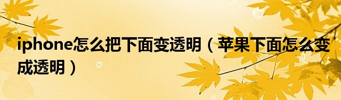 大家好,小晋来为大家解答以下问题,关于iphone怎么把下面变透明,苹果下面怎么变成透明很多人还不知道,今天让我们一起来看看吧!