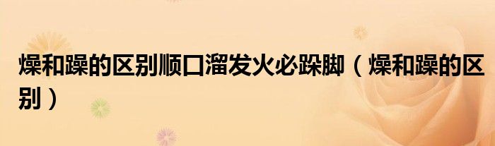 大家好,小晋来为大家解答以下问题,关于燥和躁的区别顺口溜发火必跺脚,燥和躁的区别很多人还不知道,今天让我们一起来看看吧!